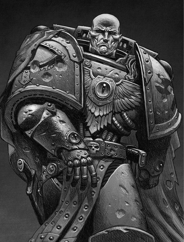 The Legion’s resident guerilla warfare hater, Tybalt Marr is a true son, which refers to a genetic defect which makes him resemble Horus Lupercal, their gene-father closely, this is how he got the nickname “The Either” as his close friend, Verulam Moy and him looked so similar and behaved so similarly they might as well been twins, hence the nickname for Marr “The Either” and Moy “The Or”. Moy would be killed during the conquest of Davin and Marr would fall into grief, isolating himself until the eve of the Horus Heresy where Horus Lupercal would personally induct him into a warrior lodge, securing his loyalty to the traitor cause and leading to him fighting in the dropsite masacre where he would fight Shadrak Medusan and his adhoc army known as the shattered legion, an army made up of Iron Hands, Raven Guard and Salamander legion survivors who would stage guerilla warfare. This would encourage Marr to devote himself to wiping out these survivors, and with the blessing of the warmaster Horus and a gift of a new sword called the culling blade he would go on to slay shadrak and dismantle shattered legion operations throughout the dark empire of horus.