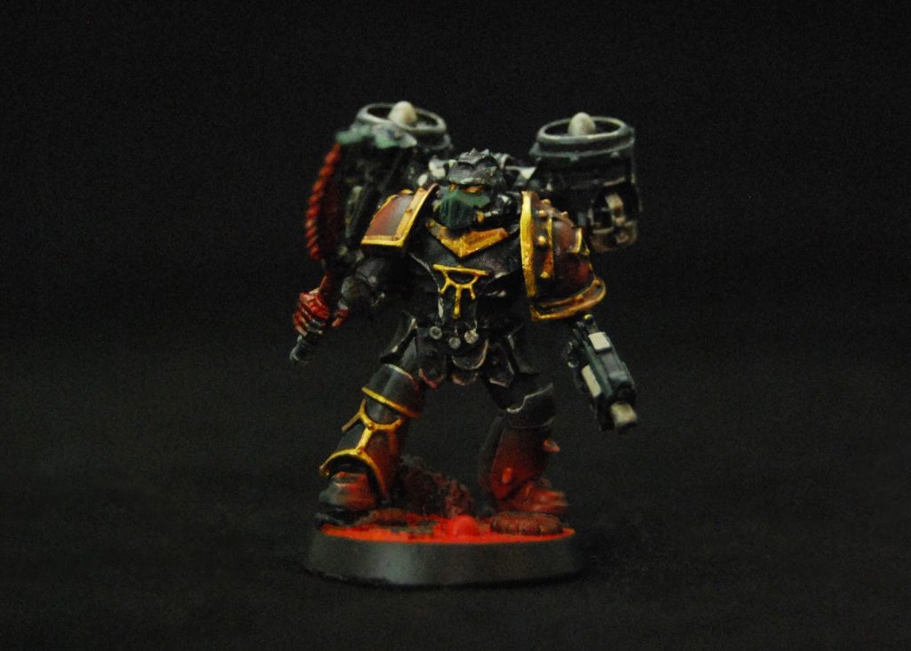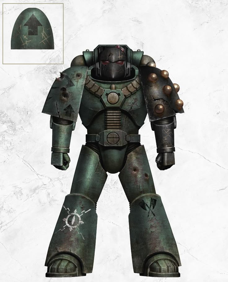 If you had grown tired of me talking negatively about our boys in green, dont worry these next two entries are gonna be a lot of optimism. In lore the justaerin are the elite of the elite, clad in jet black cataphractii armour these warriors exemplify everything the legion is about. Lets start with stats, they are all WS5, BS4, 4 attacks, two wounds, toughness 5, Leadership 10, Cool 9. for those who dont play the game, they are numerically the strongest terminators in the game, while some terminators may be better on a technicality due to stat to point ratio these guys are simply the highest statted termies in the game for the whole unit (barring the dark angels inner circle sarge but he’s a weird outlier and only one guy in the unit with those stats) and can pack weapons to boot, with everyone coming base with a power weapon and banestrike combi bolter, all models may upgrade to a legion officer weapon, trade their banestrike for a combi weapon and one per five may take a reaper auto cannon, heavy flamer, plasma blaster or uniquely to just these guys and the raven guard deliverer squad multi meltas. Rules wise they have vanguard 4, bulky 2 and implacable advance.